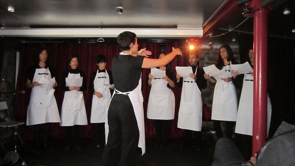 Singers at CoroDelantal: Inma Heredia, Thessia Machado, Barbara Scandroglio (sopranos); Merche Blasco, María Marinas, Pilar Carreras (altos); Jorge López, Luisen Elías (tenors); Brian Abbott (bass).
