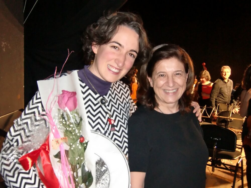 Ana y Mercedes, se preparan para su primera actuación de música contemporánea.