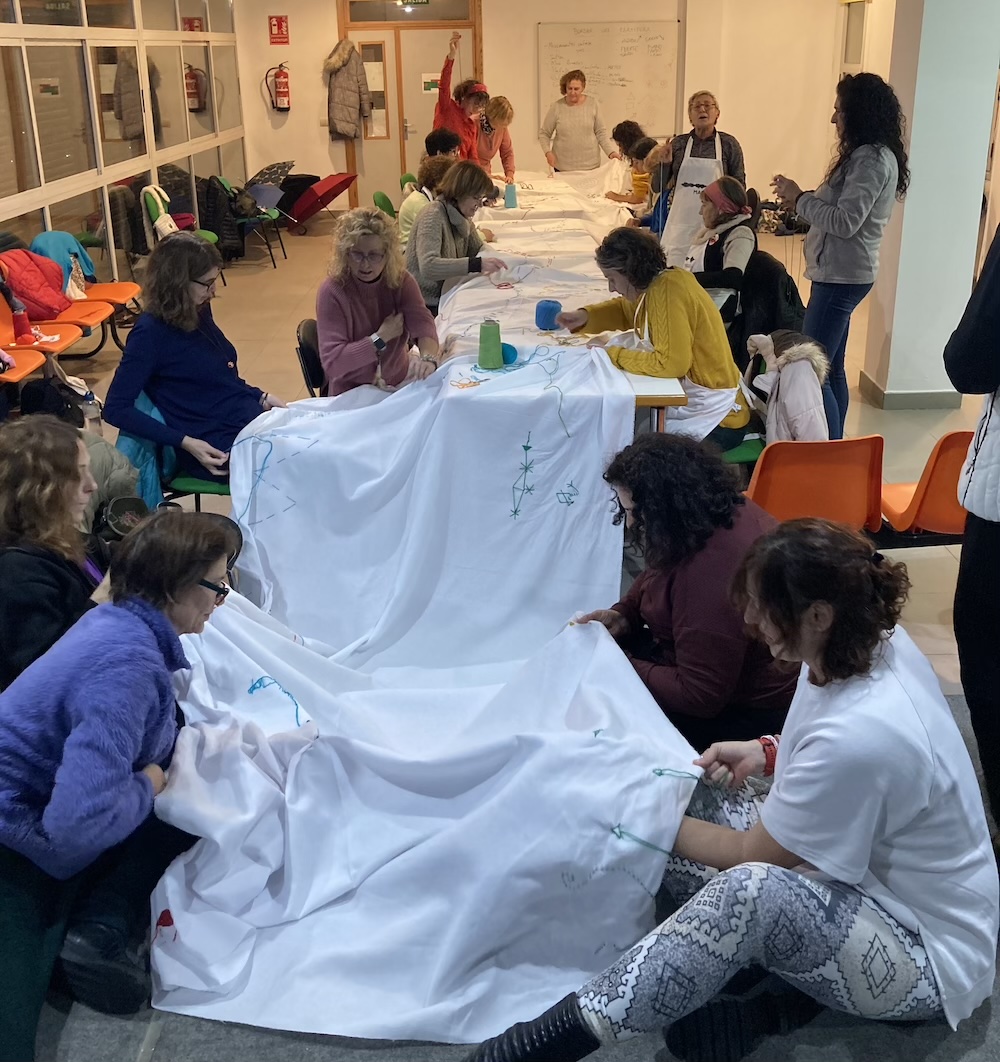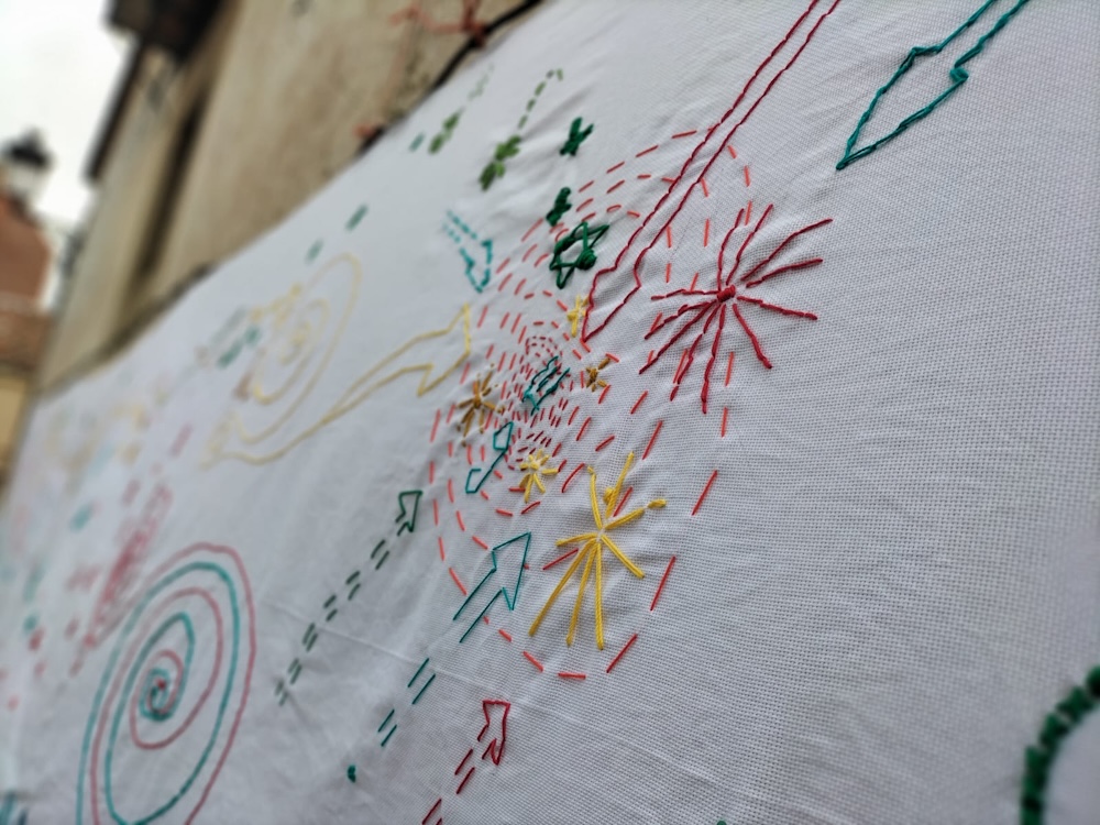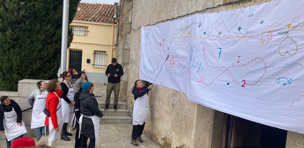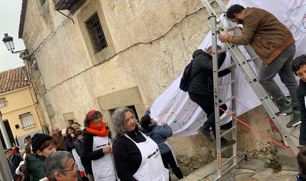 In december 2023, Gran CoroDelantal (made from members from New York, Madrid and Alicante), went to a little village in Extremadura to make possible a beautiful project along with local people: a giant embroider score.