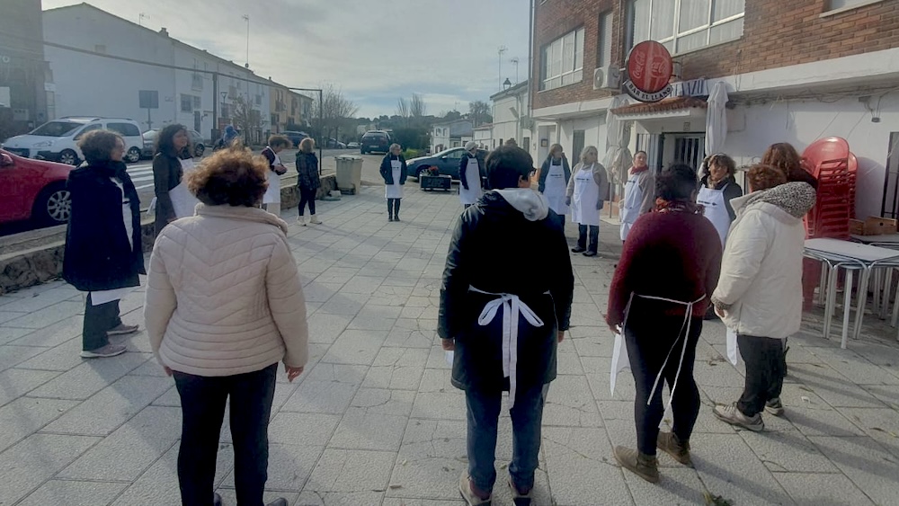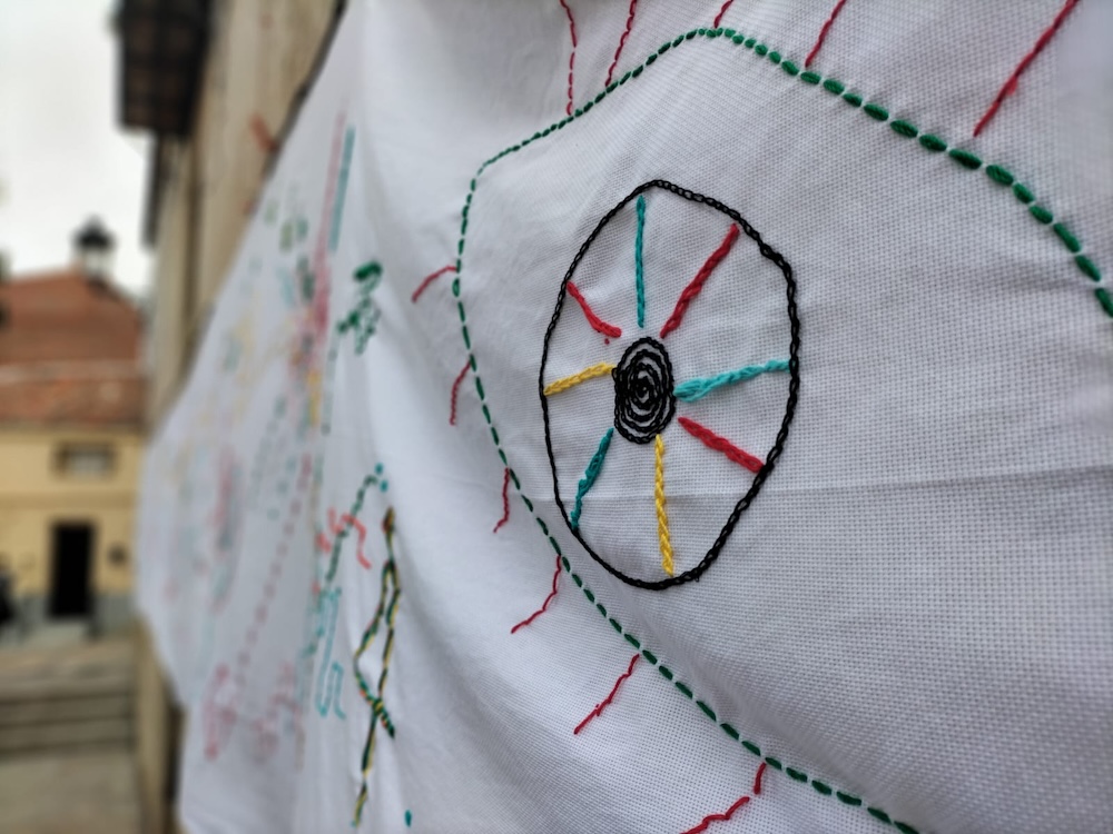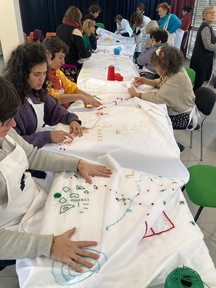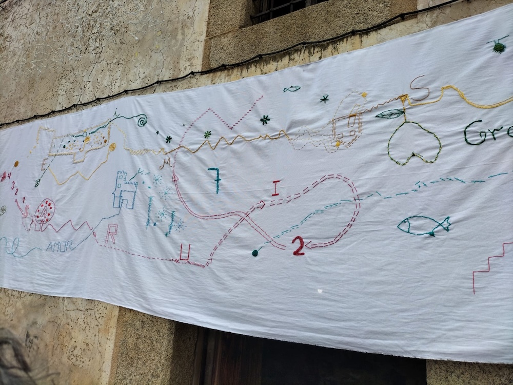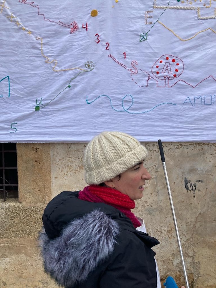 In december 2023, Gran CoroDelantal (made from members from New York, Madrid and Alicante), went to a little village in Extremadura to make possible a beautiful project along with local people: a giant embroider score.
