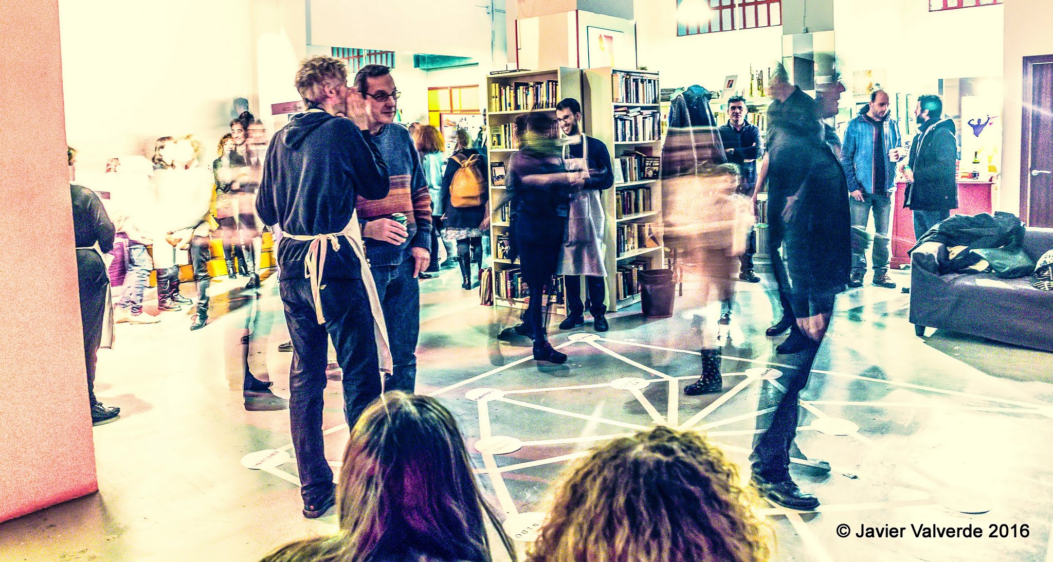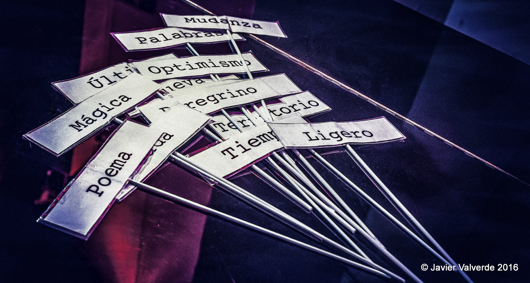 Partitura hecha a base de cartelitos con palabras sueltas, para coro. Inspirada en el libro ’88 fragmentos’ de José Luis Gallero.