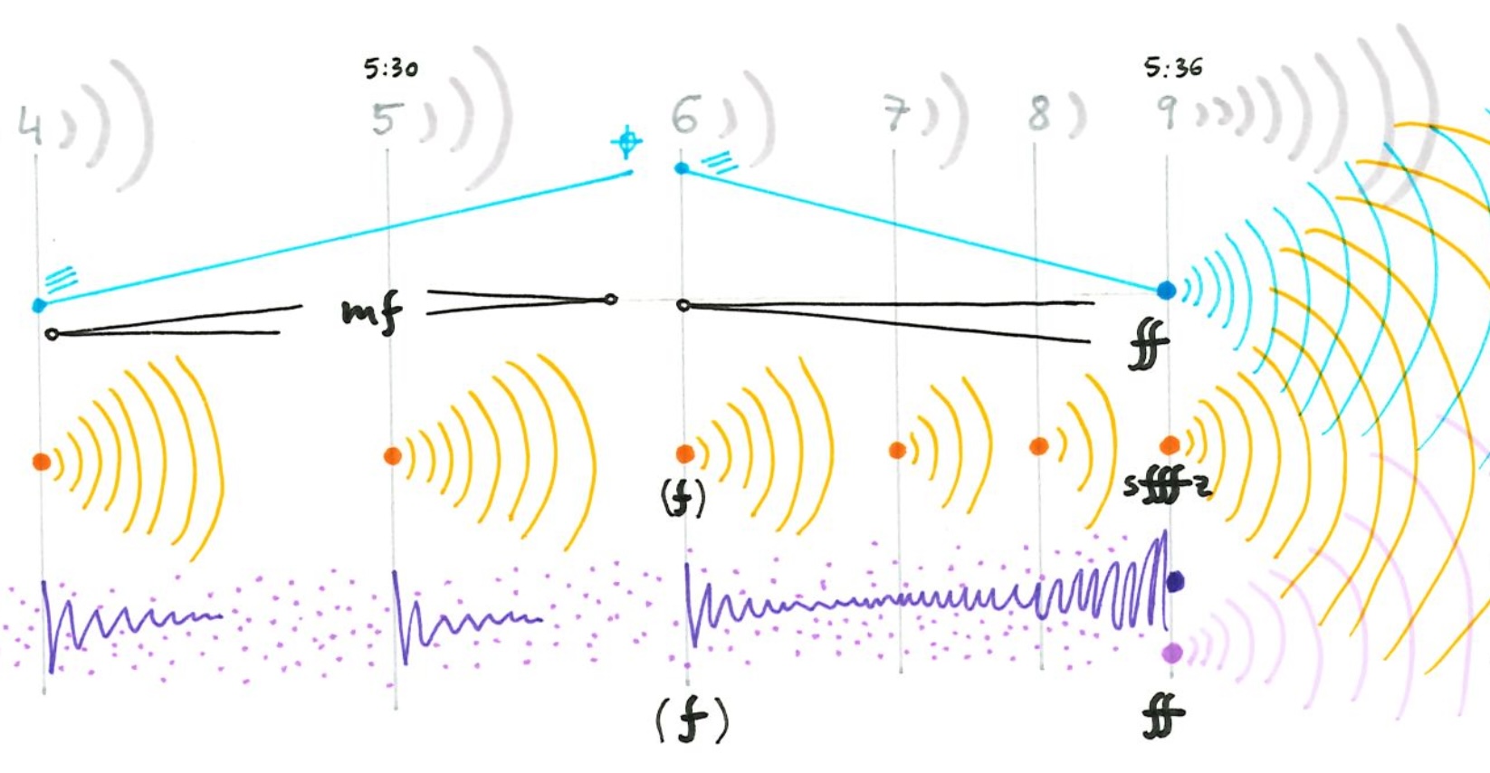 Some details from the score in paper, that works as a training support but is not meant to be read onstage while the video is running.