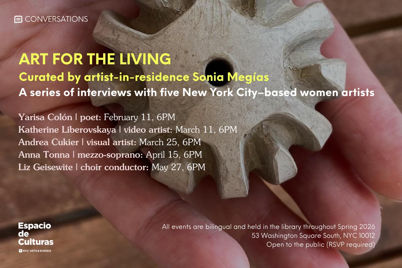 https://as.nyu.edu/research-centers/espaciodeculturas/events/Spring-2026/art-for-the-living-curated-by-artist-in-residency-sonia-megias.html