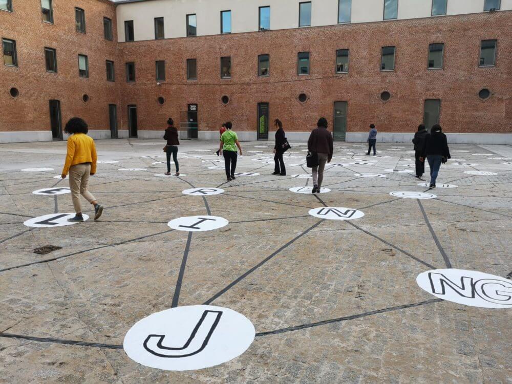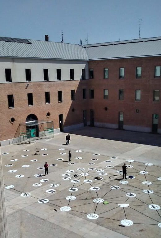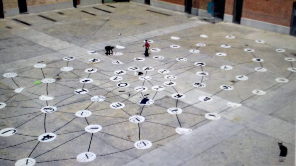 La partitura gigante del patio será creada con colaboración del American Space Madrid, y algunas de las obras expuestas se interpretarán en el concierto-performance de Sonia Megías VIII MONO+GRAPHIC.