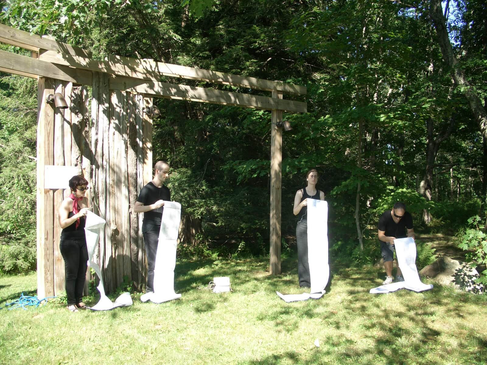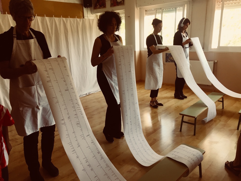 2011’IX. Estreno de ’25 Ciudades 50 calles’ – partituras extendidas en el suelo