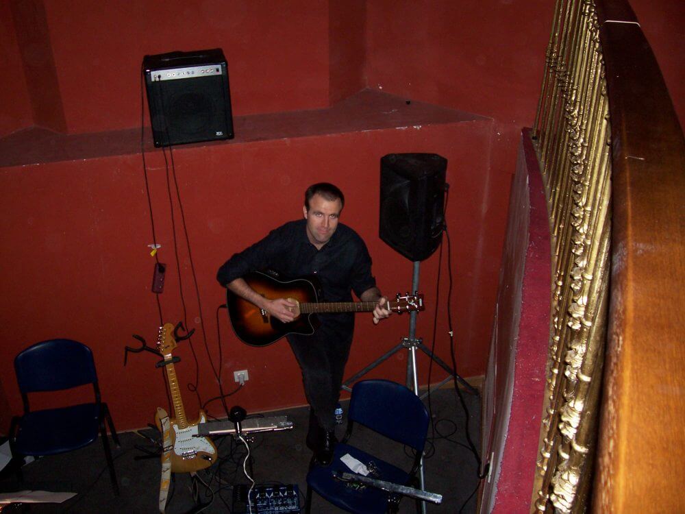2007’X. Murcia. Ensayando con Pablo la parte de guitarra eléctrica de La Mitad del Camino