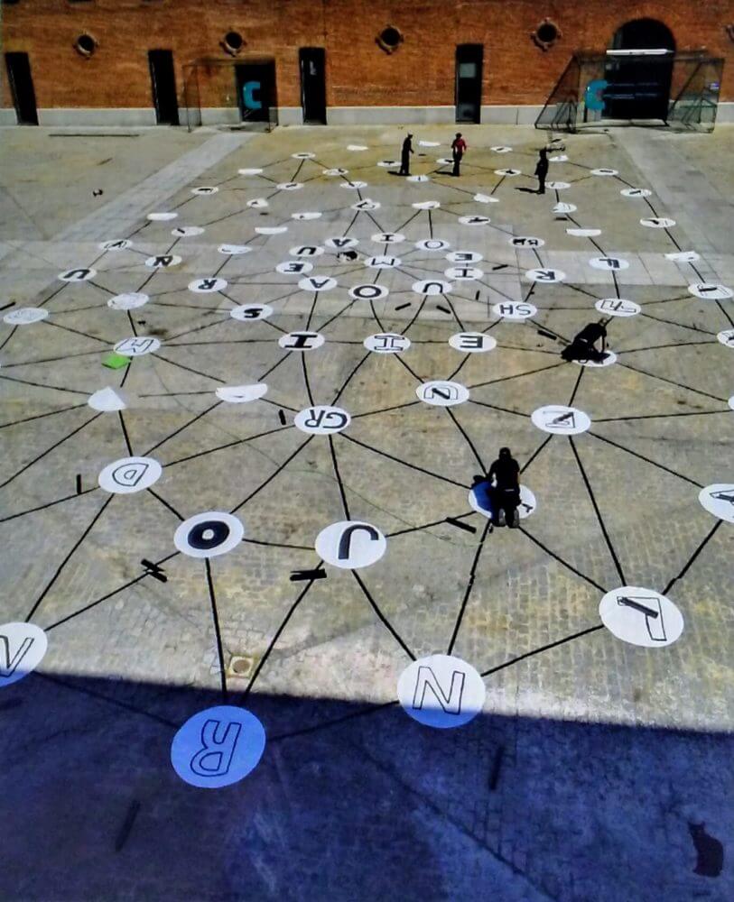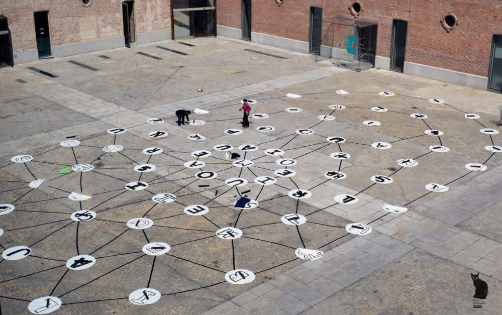 La partitura gigante fue financiada por el American Space / Embajada de los Estados Unidos en Madrid, e instalada en uno de los patios del Centro Cultural Conde Duque durante el VIII MONO+GRAPHIC.